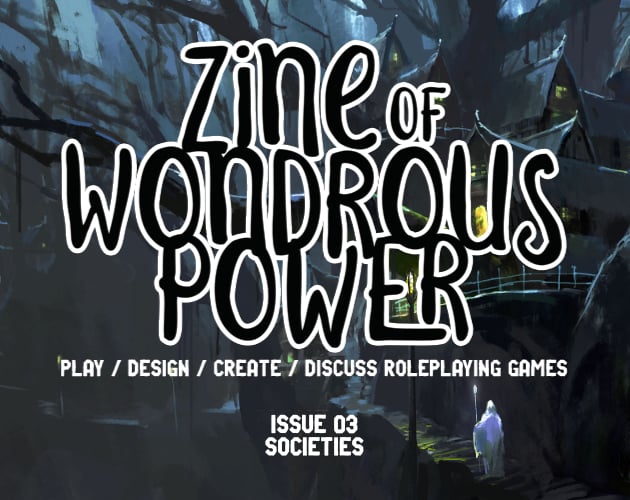 Zine of Wondrous Power is a gaming zine by Daniel M. Perez dedicated to exploring playing, design, creation, and discussion of roleplaying games. It features short essays, small games, new rules and settings, fiction, and ideas. If it deals with roleplaying games as a hobby and art form, it has a home in the Zine of Wondrous Power.